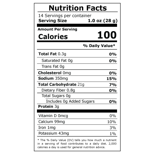 Wheat Flour, Starch,lodized Salt, FD&C Yellow 5, FD&C Red 40 & FD&C Green 3.